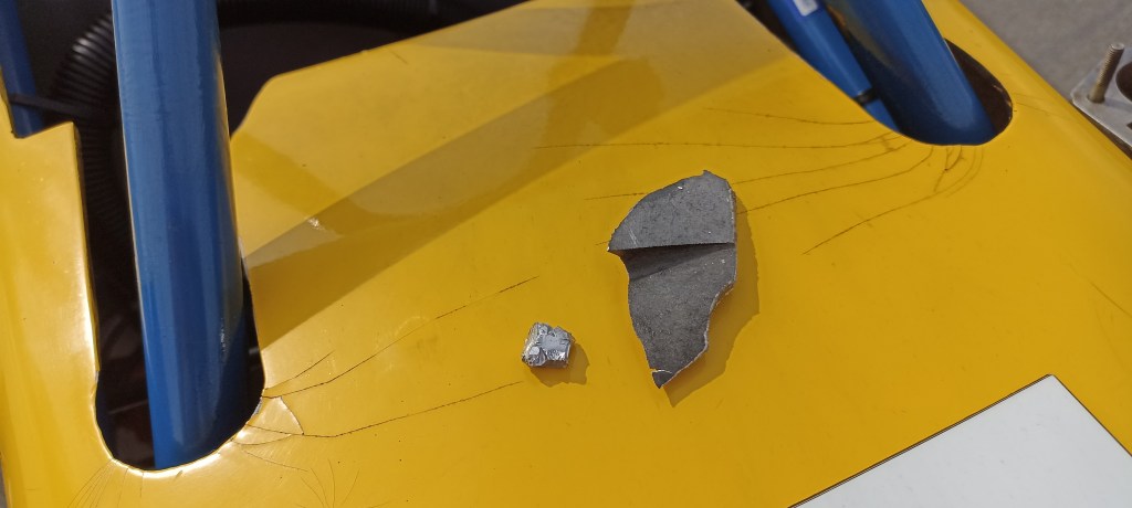 I also didn’t know at the time I’d had blown so violently that shards of piston/engine casing had punctured my own left rear tyre!
